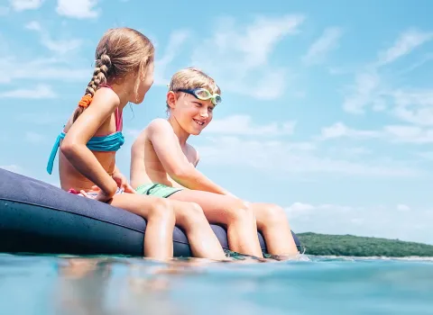 Die aufblasbaren Schwimmhilfen verleiten oft, alleine ins kühle Nass zu springen und sich auf dem Wasser treiben zu lassen. Es ist ja ein «Hilfsmittel» vorhanden, an dem man sich festhalten kann. Leider trügt dieses sichere Gefühl: Wie schnell ist es passiert, dass man von einer Luftmatratze abrutscht oder sie kaputt geht und man ins Wasser fällt? Dies wird dann besonders gefährlich, wenn es wenig geübte Schwimmer und Kinder betrifft. Deshalb empfiehlt die SLRG, mit den Luftmatratzen und Co. stets in Ufernähe zu bleiben und Kinder nur begleitet ans Wasser zu lassen.