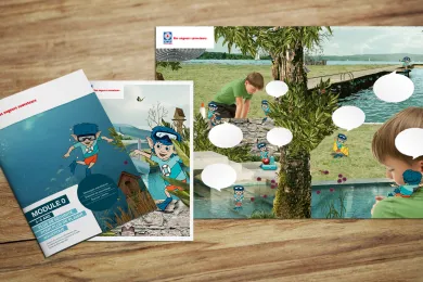 Le programme comprend des programmes partiels polyvalents et des supports qui vous aident à habituer les enfants, de manière ludique, à la bonne façon d’agir au bord, dans et sur l’eau. Apprendre les maximes de la baignade en jouant au Memory, se familiariser à la réaction en cas d’urgence grâce au contrôle de sécurité aquatique CSA ou se familiariser à la natation en lac: les possibilités sont innombrables.